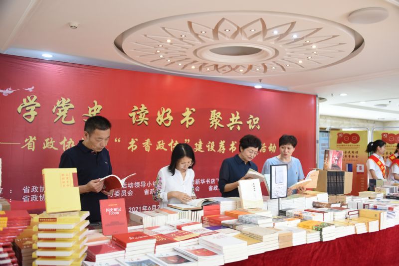 赠人书卷、手余墨香。6月24日下午,省政协在机关开展“学党史、读好书、聚共识”,以“书香政协”建设促进“书香社会”建设为主题的荐书读书活动。在机关中楼一楼大厅设立的图书展台上,精心摆放的党史学习教育红色图书、从严治党学习书目、红色人物传记、秦文化研究书目、甘版类图书,以及人文生活类等千余种精选的优质图书吸引了参加活动的省政协委员、机关干部驻足翻阅、购买。