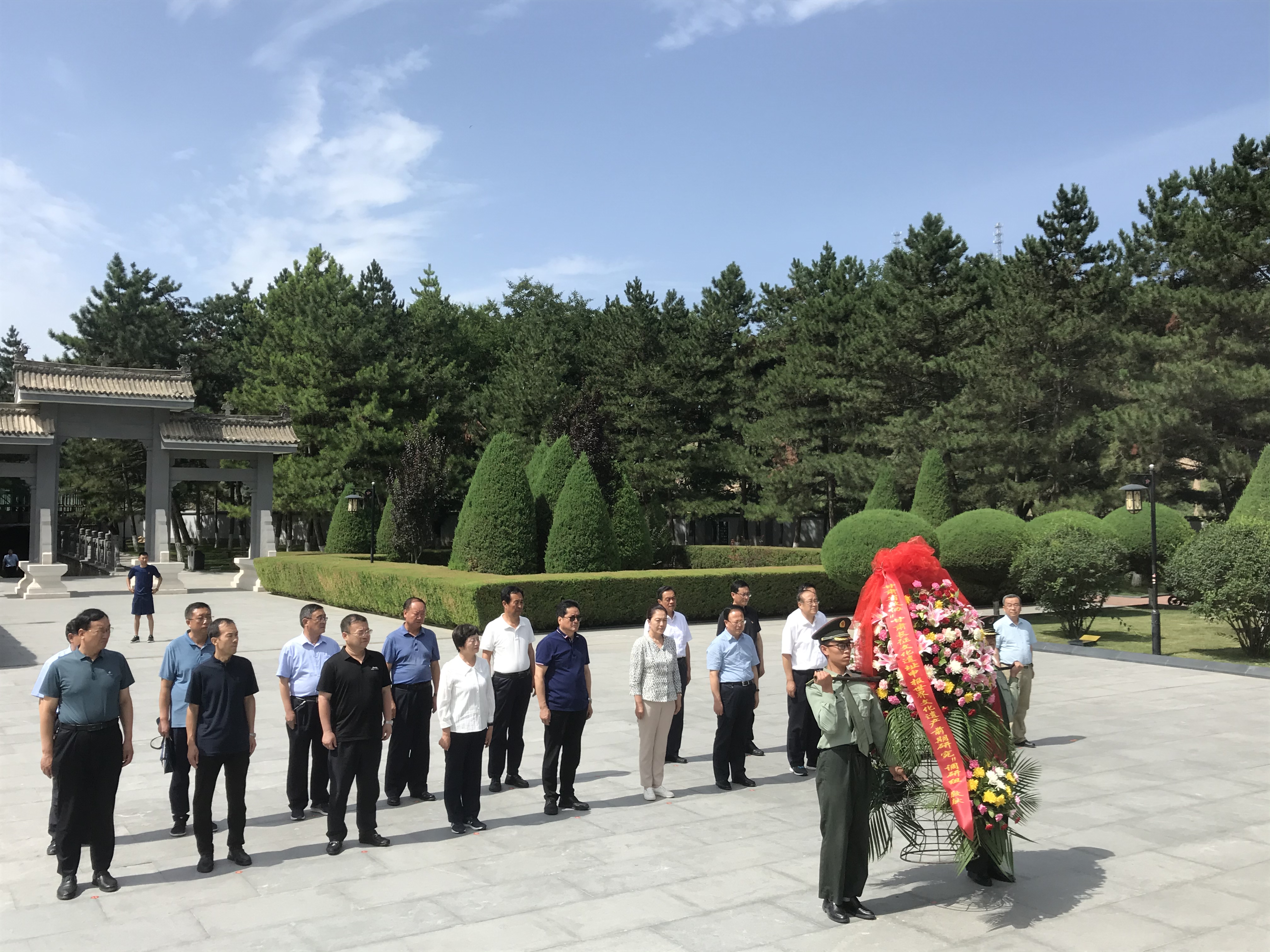 盛夏时节,华池县南梁革命纪念馆内松柏青翠、庄严肃穆,革命烈士纪念碑巍然矗立。陈青带领调研组向南梁革命烈士敬献花篮,瞻仰革命烈士纪念碑,缅怀革命先烈,表达追思之情。敬献花篮仪式后,调研组一行还参观考察了陕甘边区苏维埃政府旧址和南梁革命纪念馆。